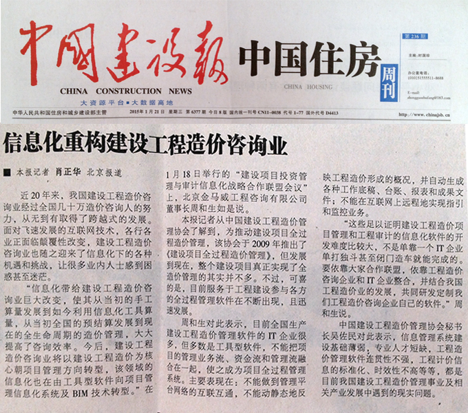 《中國(guó)建設(shè)報(bào)》對(duì)我公司召開(kāi)的“建設(shè)項(xiàng)目投資管理與審計(jì)信息化戰(zhàn)略合作聯(lián)盟會(huì)議”進(jìn)行報(bào)道