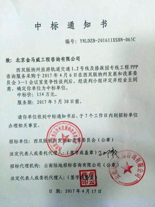 2017年4月,我公司成功中標(biāo)西雙版納州旅游軌道交通1、2號(hào)線(xiàn)及傣族園專(zhuān)線(xiàn)工程PPP咨詢(xún)服務(wù)采購(gòu)項(xiàng)目。